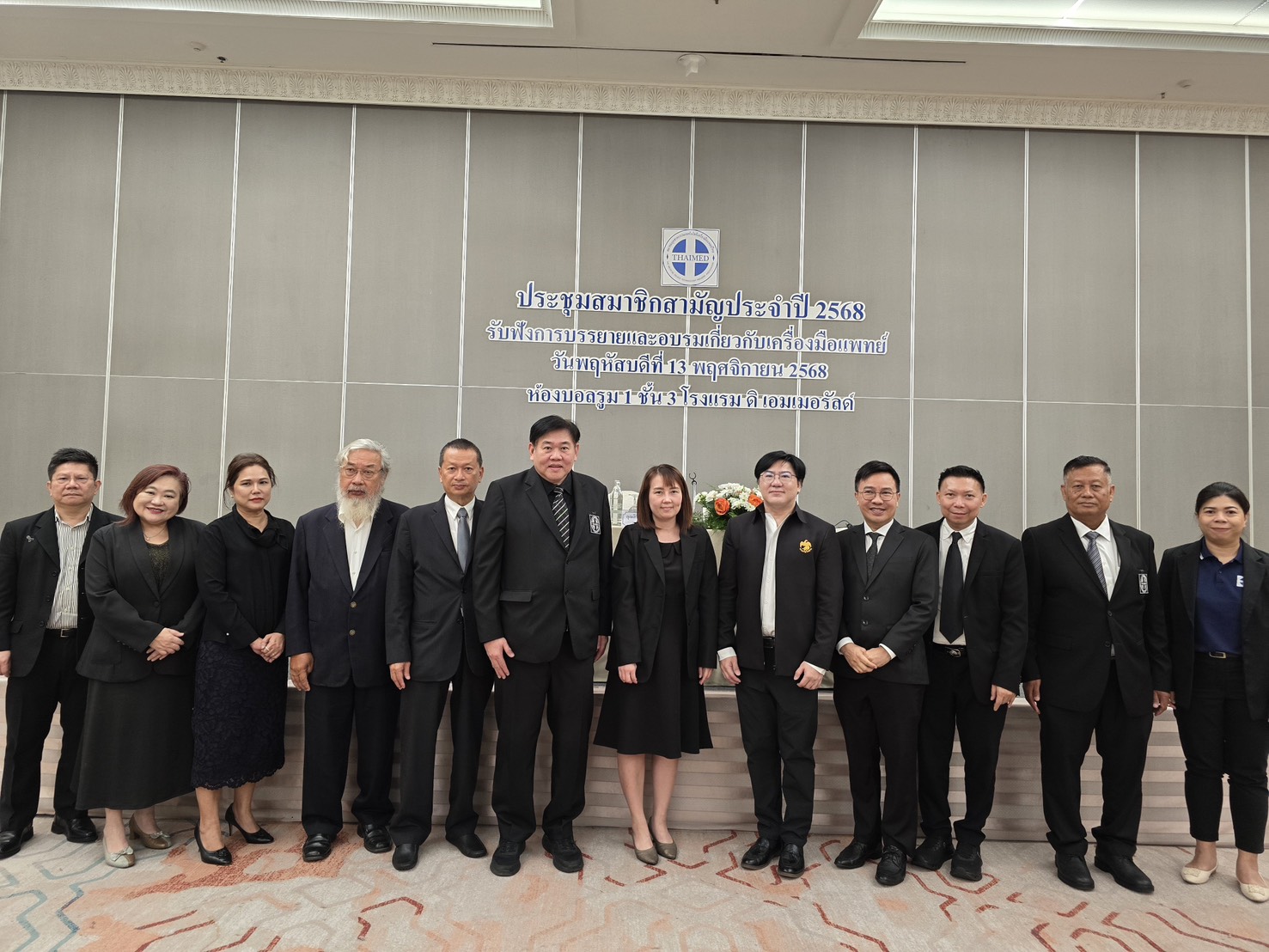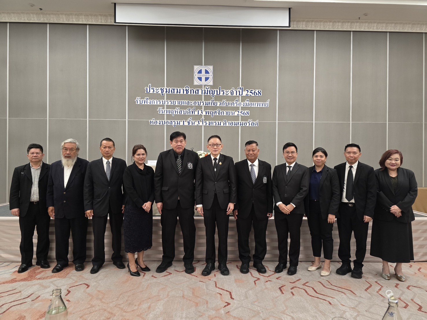 เมื่อวันพฤหัสบดีที่ 13 พฤศจิกายน พ.ศ.2568 ที่ผ่านมานั้น สมาคมอุตสาหกรรมเทคโนโลยีเครื่องมือแพทย์ไทย (THAIMED) กำหนดให้มีการประชุมสมาชิกสามัญประจำปี 2568 ณ ห้องบอลรูม 1 ชั้น 3 โรงแรม ดิเอมเมอรัลด์ รัชดา ตั้งแต่เวลา 9.00 – 17.00 น. โดยมีผู้เข้าร่วมประชุมประมาณ 130 ท่าน ทั้งผู้เข้าร่วมประชุมส่วนใหญ่เป็นผู้ประกอบการทางด้านเครื่องแพทย์ ทั้งนี้ THAIMED ได้มีกำหนดการจัดการบรรยายและอบรมเกี่ยวกับทางด้านเครื่องมือแพทย์ ตามรูปภาพด้านล่างนี้
